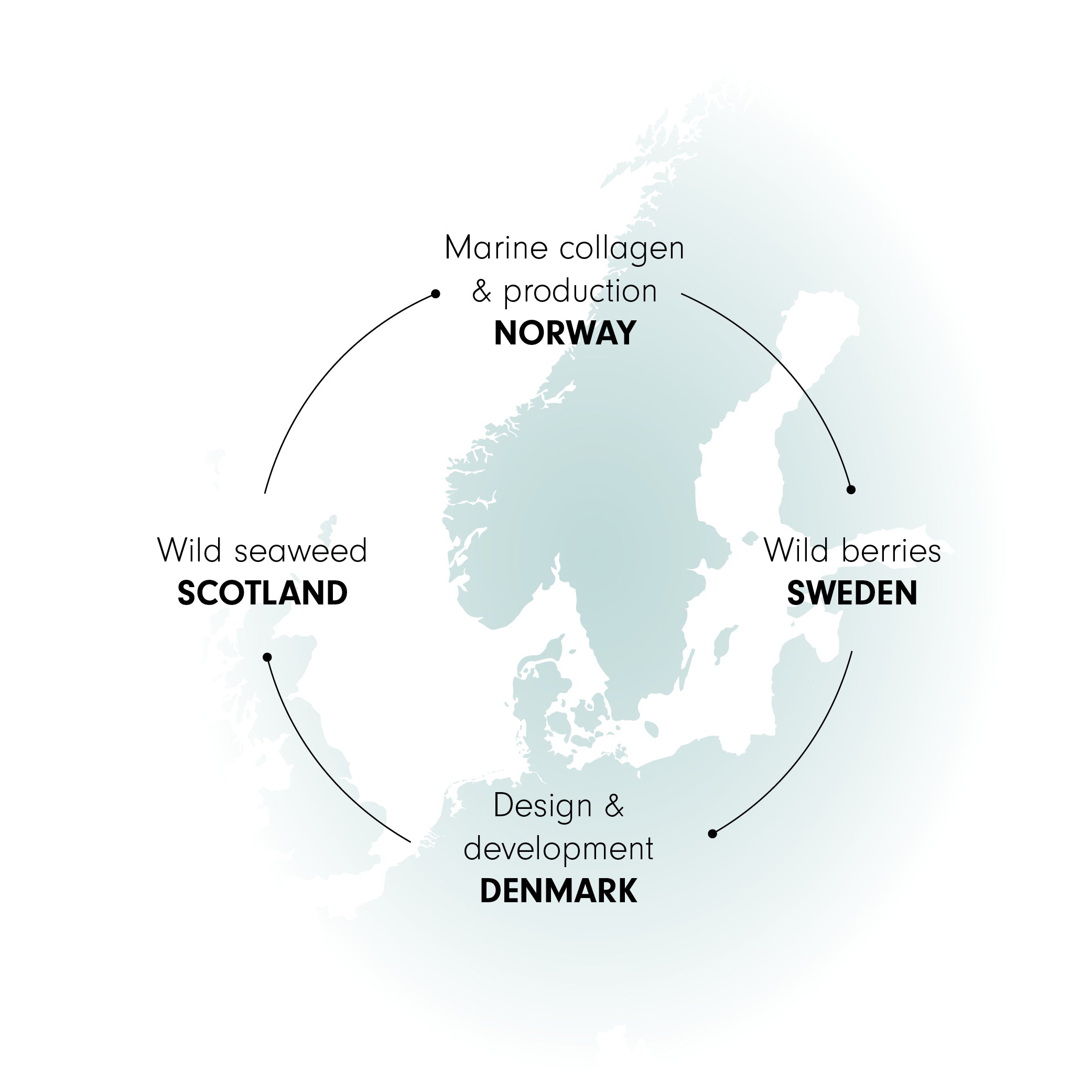 With trust in, and love for, the wild Nordic nature, we have sourced raw materials that offer something truly special when it comes to inner beauty. Through our passionate suppliers, we have established a small supply chain for our primary ingredients, bringing us marine collagen from Norway, wild forest blueberries from Sweden, and wild-harvested seaweed from Scotland. Everything is then sent to Karmøy, an island on the Norwegian west coast, for production using our own unique recipes. Vild Nord is part of nature – we are grateful to work with that every single day.